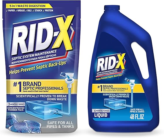 Amazon Com Rid X Enzimas De Tratamiento De Tanque Septico Liquido Septi Pacs Suministro De 9 Meses Liquido De Suministro De 6 Meses 48 Onzas Y Suministro De 3 Meses 3 2 Onzas Salud Y Hogar